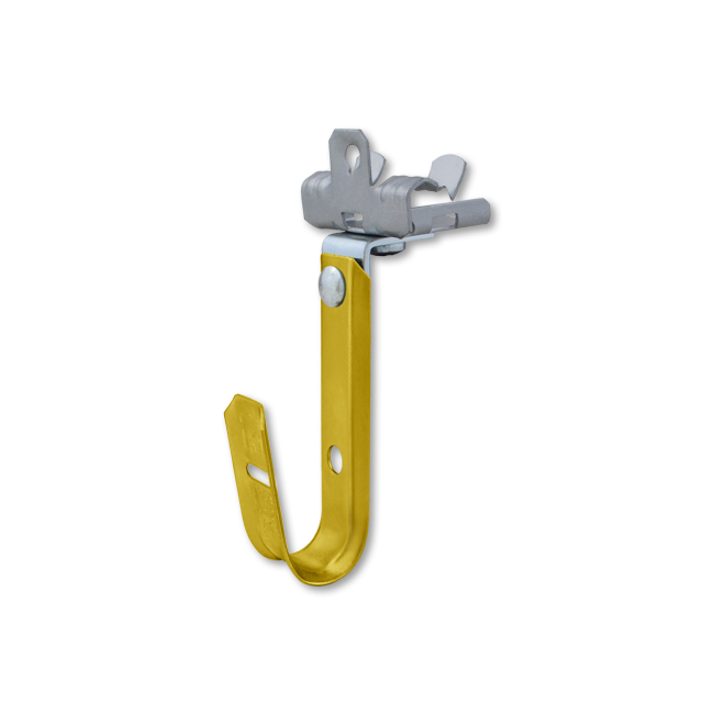 The cable support with Angle Clip & FM24 Steel Beam Clamp includes a spring steel knock-on beam clamp that allows you to attach the hook to flanges 1/8” – 1/4″ thick and then swivel 360 degrees.